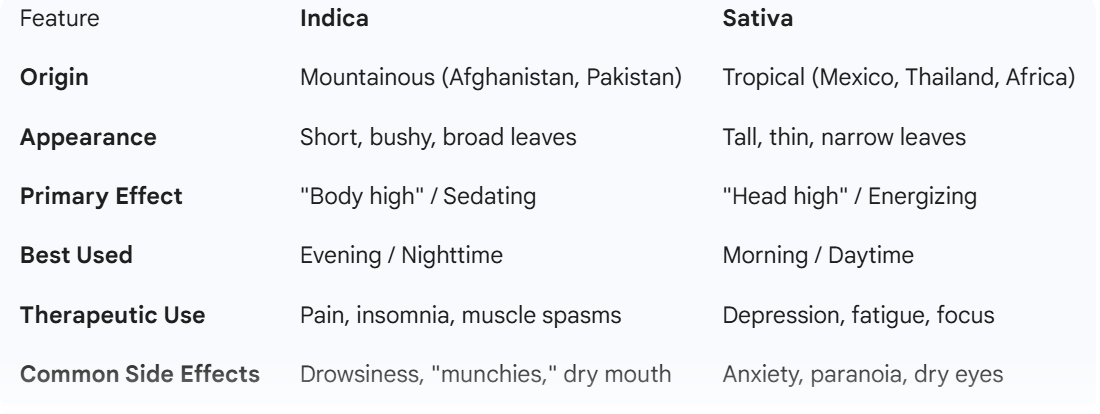 Because Indicas are highly sedating, they are best reserved for evening use. While therapeutic, users should prepare for: